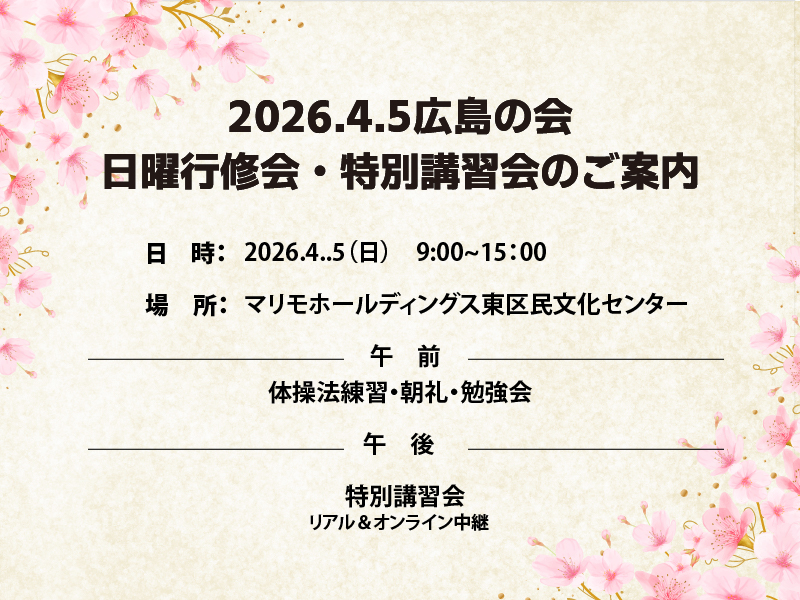 | 備考 | ※本年1月からZoomを活用して実況中継配信に取り組んでいます。まだまだ技術的には不十分ですが、会員の皆様を中心に希望者にはZoom招待メールをお送りします。参加ご希望の方はメールをいただければ招待メールをお送りします。 荒谷メール:aratani_aratani0825@outlook.jp |